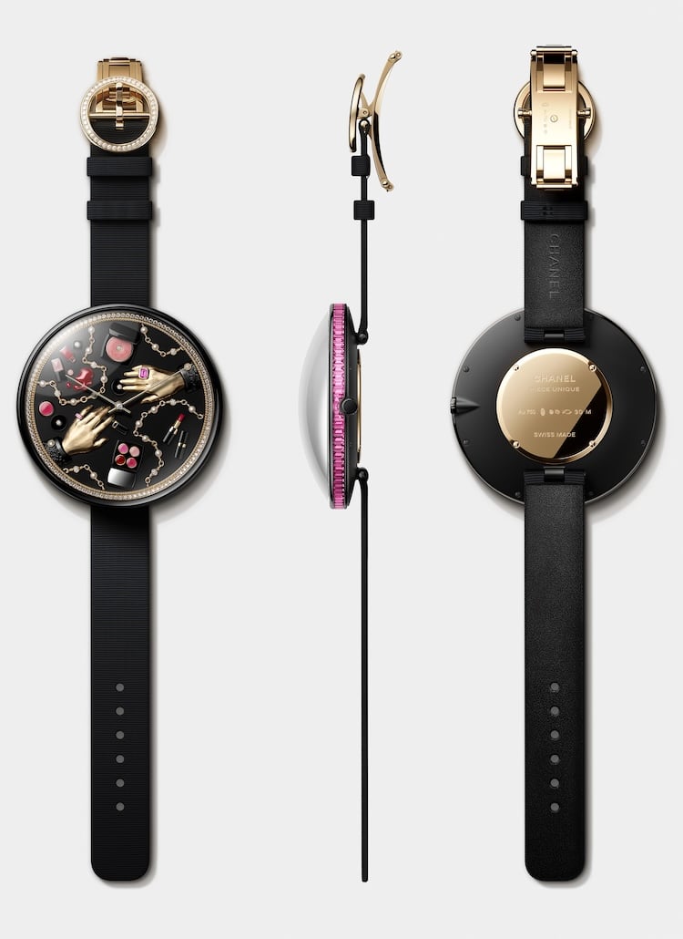 Se il blu domina il linguaggio tecnico della maison, il rosa della collezione Blush è un omaggio all’universo beauty di Gabrielle Chanel. «Mi sono chiesto: perché non truccare anche il tempo?» spiega Chastaingt. Il risultato è una capsule cromatica che attraversa tutte le collezioni: dal Boy·Friend con Mademoiselle che soffia un bacio alla Première con charms smaltati, fino alla spettacolare Mademoiselle J12 Blush con dischi in rotazione ogni 5 minuti e al Code Coco con cinturino in pelle rosa iridescente.