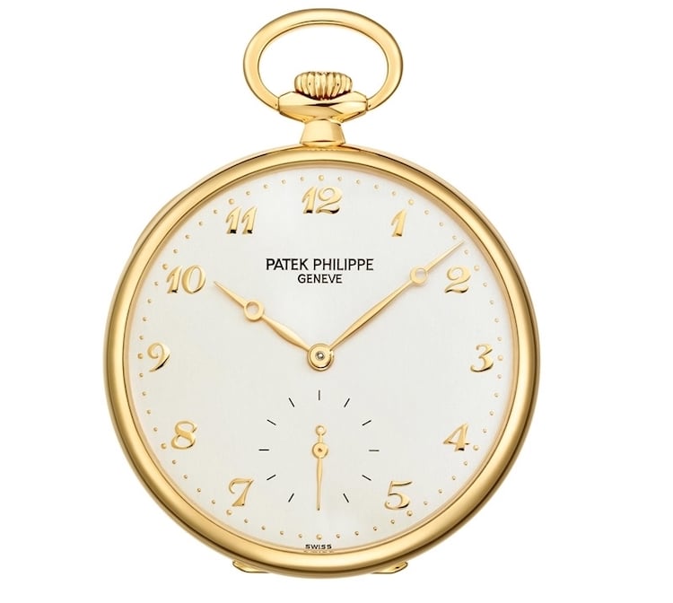 Altro segnatempo dal fascino immortale è il Patek Philippe Referenza 973J con cassa non impermeabile in oro giallo da 44 mm, quadrante laccato bianco e quadrante ausiliario per i piccoli secondi, con numeri arabi. All’intero un movimento meccanico a carica manuale. Consegnato con una catena in oro giallo.