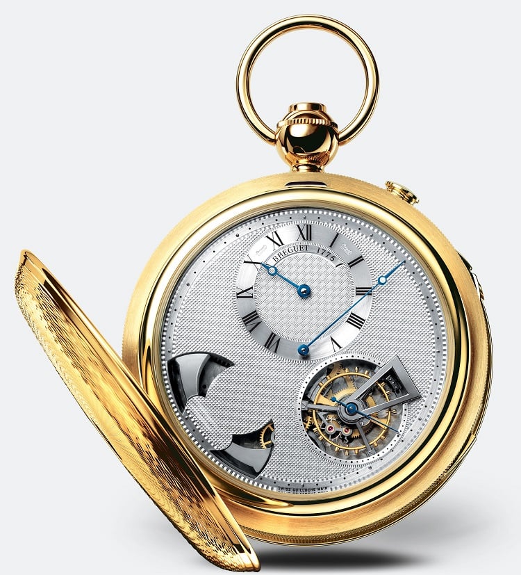 Tra le maison che hanno lanciato negli anni modelli da taschino diventati veri e propri oggetti di culto, una menzione la merita sicuramente Breguet. Uno dei grandi classici dell’azienda svizzera è il Classique Grande Complication Referenza 1907 in oro giallo 18 carati, con grande suoneria e tourbillon. Il movimento 508GS è a carica manuale nei due sensi, inciso a mano così come il quadrante argentato.