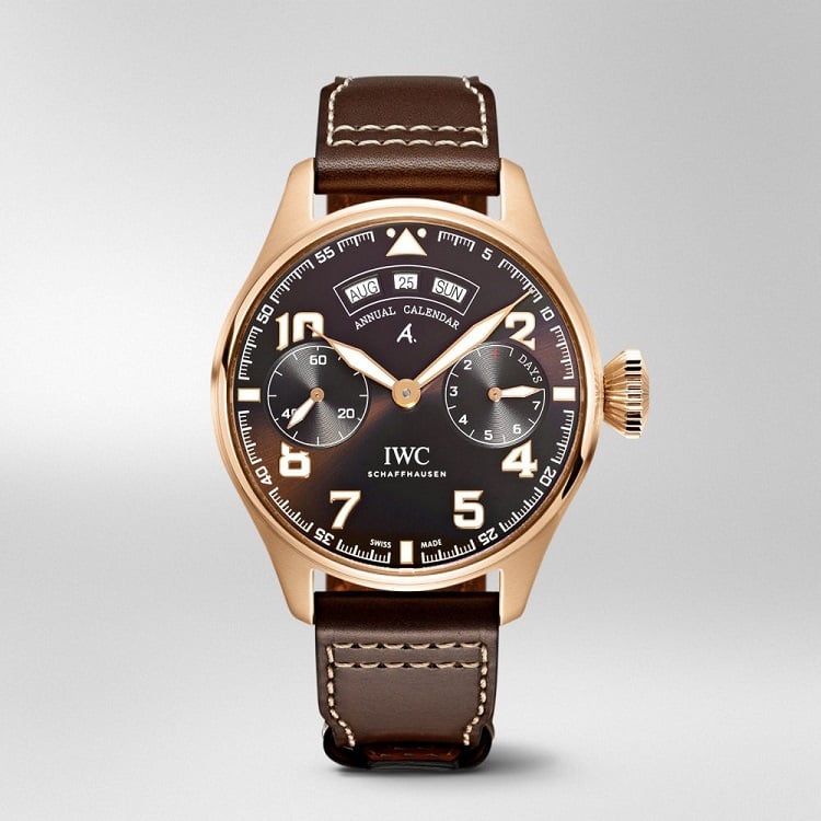 La grande A sul quadrante marrone è un omaggio all’aviatore e scrittore francese Antoine de Saint-Exupéry, l’autore del romanzo Il Piccolo Principe, così come il cinturino in pelle di vitello, ispirato alla sua tuta da aviatore e il rotore a forma di aereo, visibile dal fondello in vetro zaffiro. IWC collabora attivamente con una fondazione dedicata all’autore e che si occupa di aiutare ragazzi in situazioni di difficoltà. Un orologio dalle dimensioni non certo minimal, con la cassa da 46,2 mm che sembra pensata proprio per il polso di un atleta come Michael Jordan, disponibile al prezzo di 36.600 euro.
