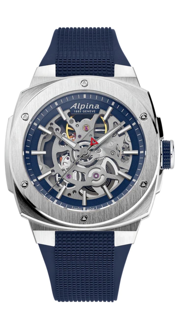 L’Alpiner Extreme Skeleton Automatic è disponibile in due varianti: una interamente in acciaio e una con dettagli blu marine che esaltano la sua versatilità.