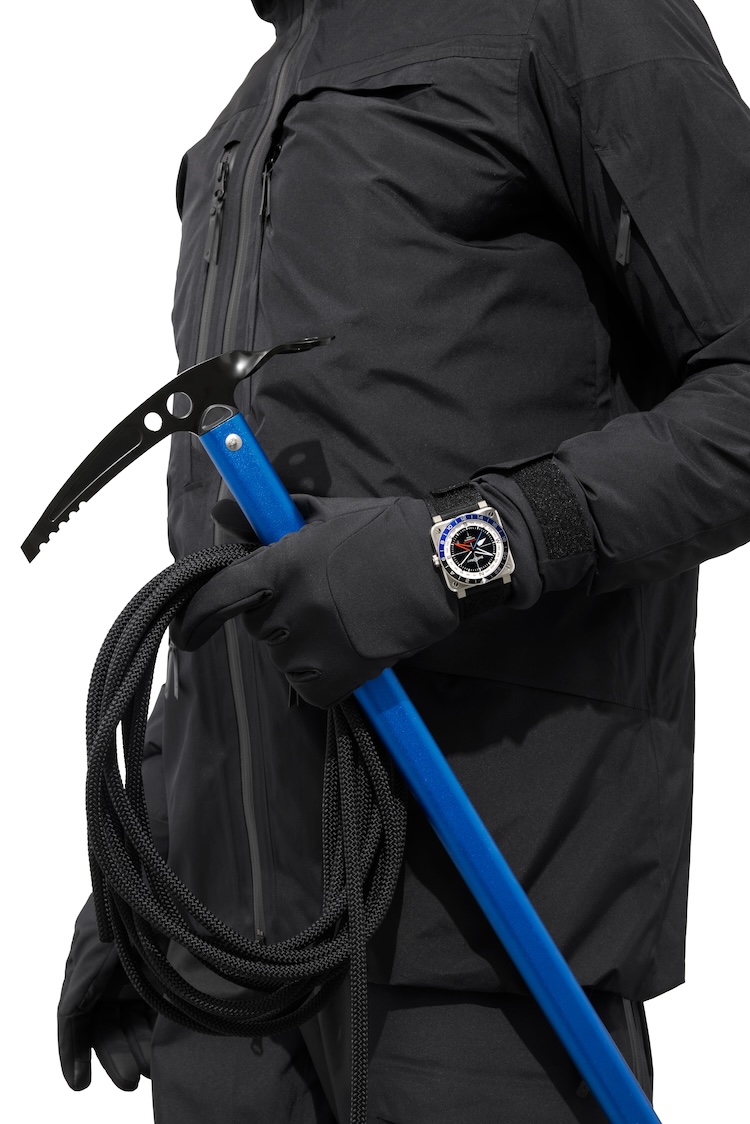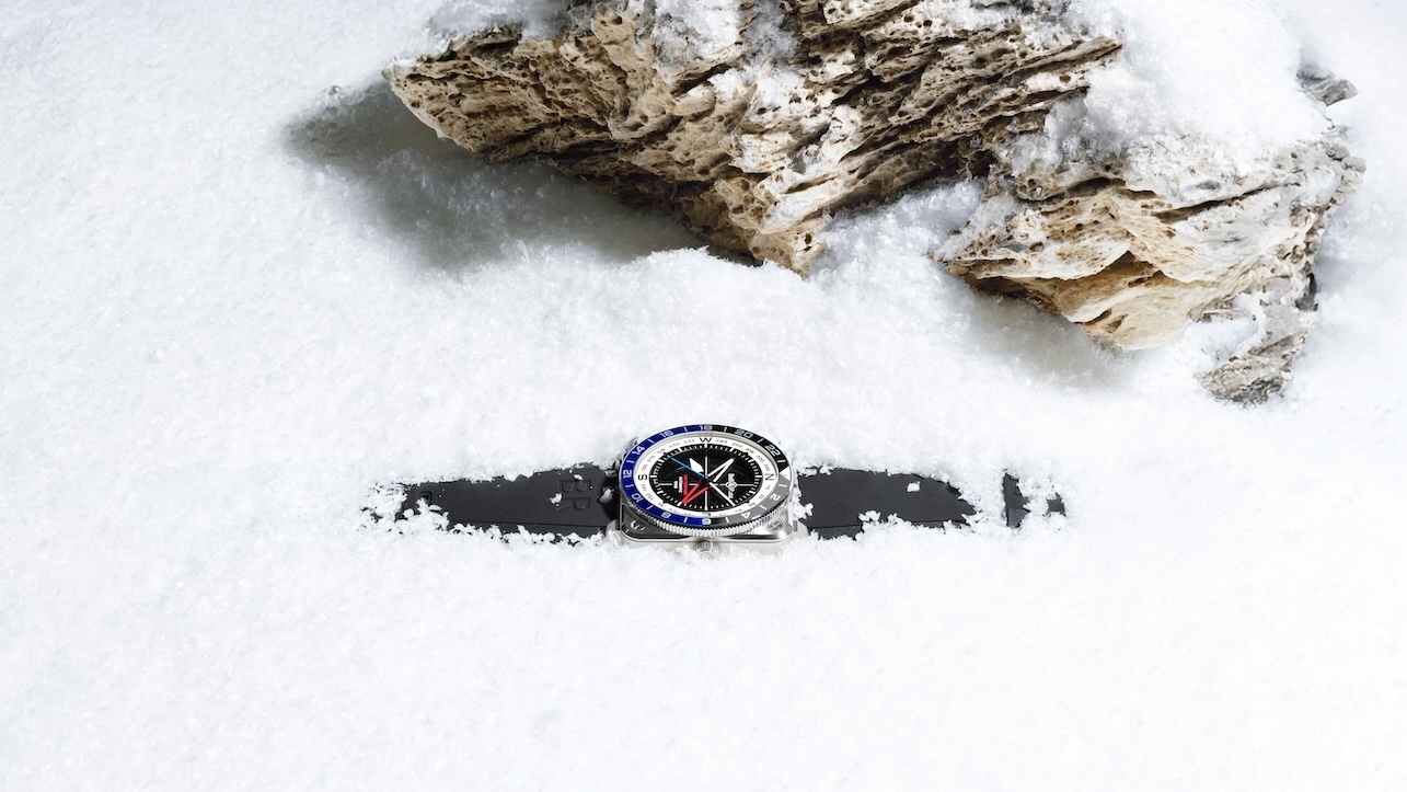Il BR-03 GMT Compass nasce così: come un orologio che combina il doppio fuso orario con la lettura della direzione, trasformando il quadrante in un dispositivo tecnico utilizzabile anche in condizioni reali.