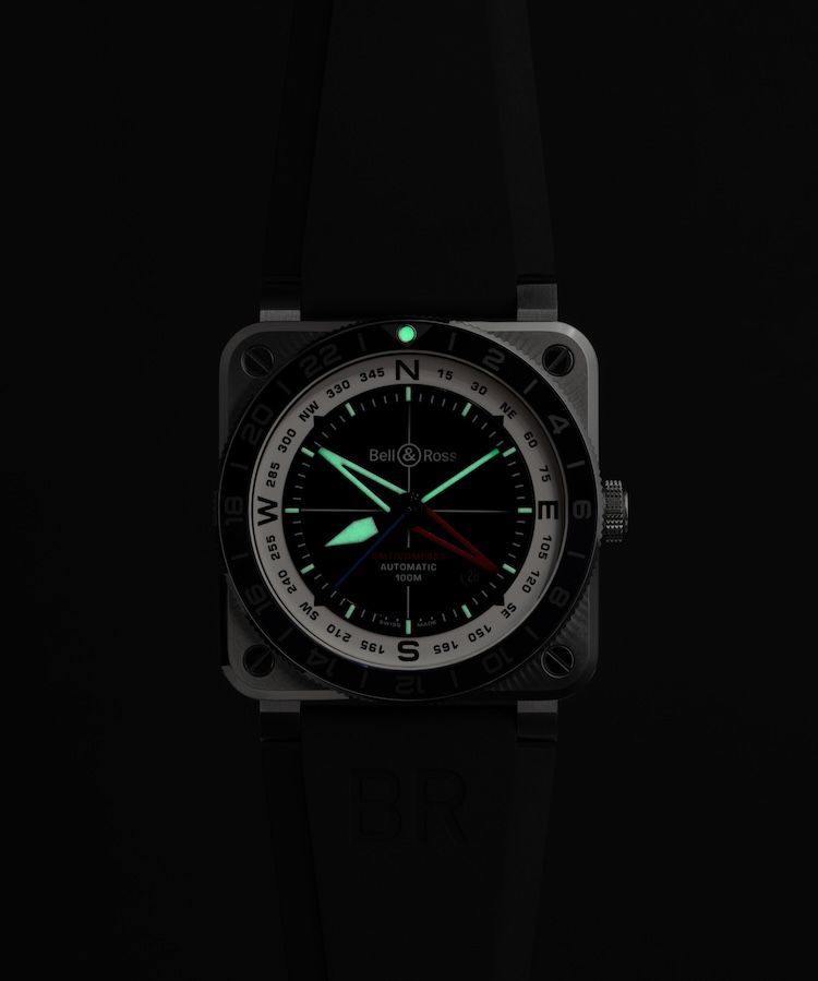 Bell & Ross introduce il BR-03 GMT Compass: un nuovo strumento da polso che unisce funzione GMT e orientamento, trasformando la struttura della bussola in un dispositivo da viaggio.