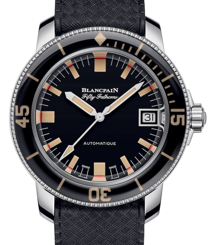Il Fifty Fathoms Barakuda è a sua volta realizzato in edizione limitata a 500 pezzi e si ispira all’orologio realizzato per la Bundesmarine, la marina militare della Germania dell’Ovest, nel 1960, un modello poi venduto anche al pubblico tramite la Barakuda che dà il nome a questa rivisitazione, una compagnia specializzata nella produzione di materiale da immersione con la quale Blancpain aveva stretto all’epoca una partnership. Resistente fino a 300 metri di profondità, con cassa in acciaio spazzolato da 40 mm, il segnatempo è attraversato sul quadrante da rettangoli per segnare l’orario attraversati da una linea rossa trattata in SuperLuminova per migliorare la leggibilità. A spingerlo, il movimento calibro 1151 con riserva di 100 ore.