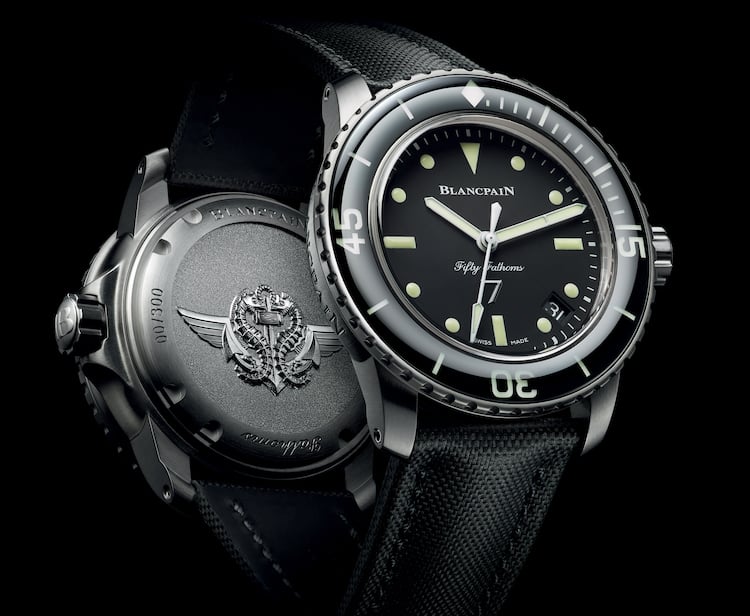 Tra le novità della maison, il Nageurs de Combat, in edizione limitata a soli 300 pezzi e pensato per omaggiare con le sue linee gli illustri predecessori della serie Fifty Fathom. Nello specifico, l’ispirazione arriva da alcuni segnatempo Blancpain realizzati nel 1953 per soddisfare le richieste del corpo dei sommozzatori francese. Un dna ancora presente oggi nel nuovo arrivato, con lunetta unidirezionale e quadrante nero con indicatori dell’orario dalle forme triangolari, rettangolari e rotonde ad alternarsi.Altro significativo omaggio al passato è presente a ore 6 dove, guardando con attenzione, è possibile notare un numero 7, che indica il record di metri di profondità raggiunti dai cosiddetti uomini-rana, facendo ricorso esclusivamente alle loro capacità fisiche. Sul retro è presente un’incisione con il simbolo dei sommozzatori transalpini, a sottolineare il legame tra la casa svizzera e la marina francese. La cassa da 45 mm è in acciaio satinato e custodisce al suo interno il movimento a carica automatica calibro 1315, con riserva di cinque giorni.
