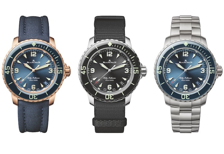 Tutte le versioni sono disponibili con un’ampia scelta di cinturini: caucciù Tropic, tessuto vela, NATO o bracciali in metallo coordinato con finiture lucide e satinate alternate. Un’attenzione che sottolinea la volontà di Blancpain di offrire un orologio autenticamente versatile, sia nello stile sia nell’utilizzo quotidiano.