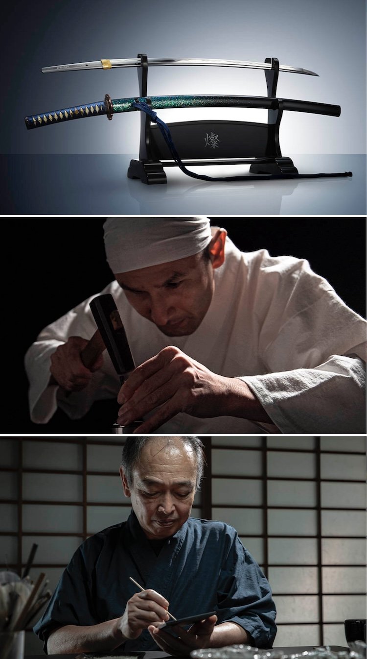 Ogni orologio è unico, grazie all’incisione a mano del carattere giapponese “燦” (San), realizzata dal maestro spadaccino Kamiyama Teruhira. La lavorazione del DAT55G, una lega metallica tre volte più dura del titanio puro, assicura una resistenza estrema senza sacrificare l’estetica.