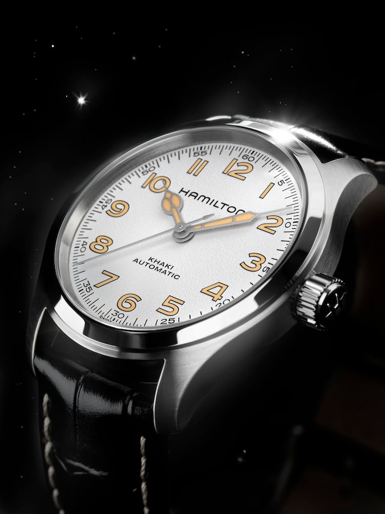 Le nuove varianti del Khaki Field Murph 38mm sono versatili e pensate per un pubblico che apprezza il connubio tra estetica e funzionalità. Il modello con cinturino in pelle nera evoca l’esplorazione dello spazio, mentre quello con bracciale in acciaio aggiunge resistenza e robustezza. Entrambi sono impermeabili fino a 100 metri (10 bar), ideali per l’avventura.