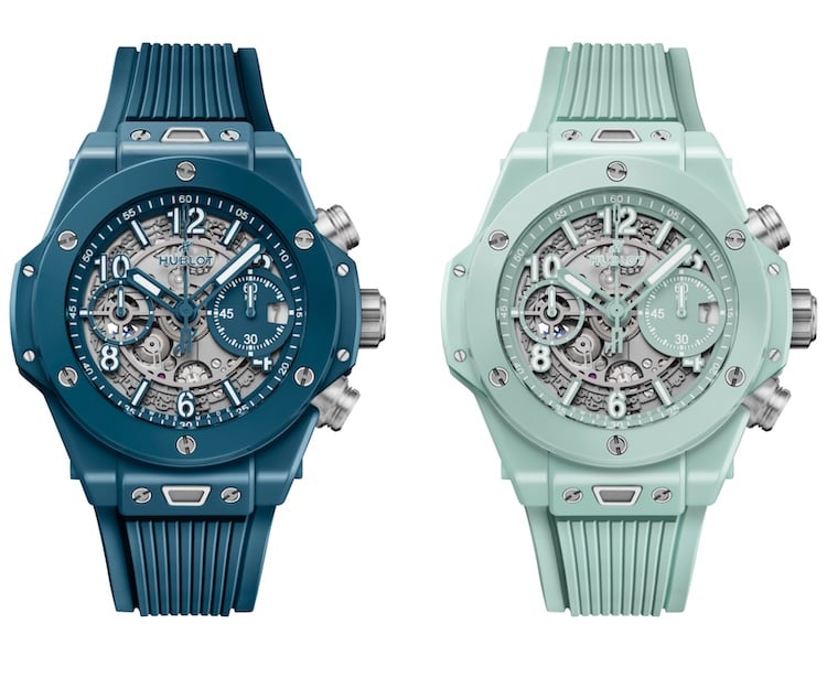 Ceramica verde menta e blu petrolio per due nuovi Hublot Big Bang, tra innovazione tecnica e libertà cromatica.