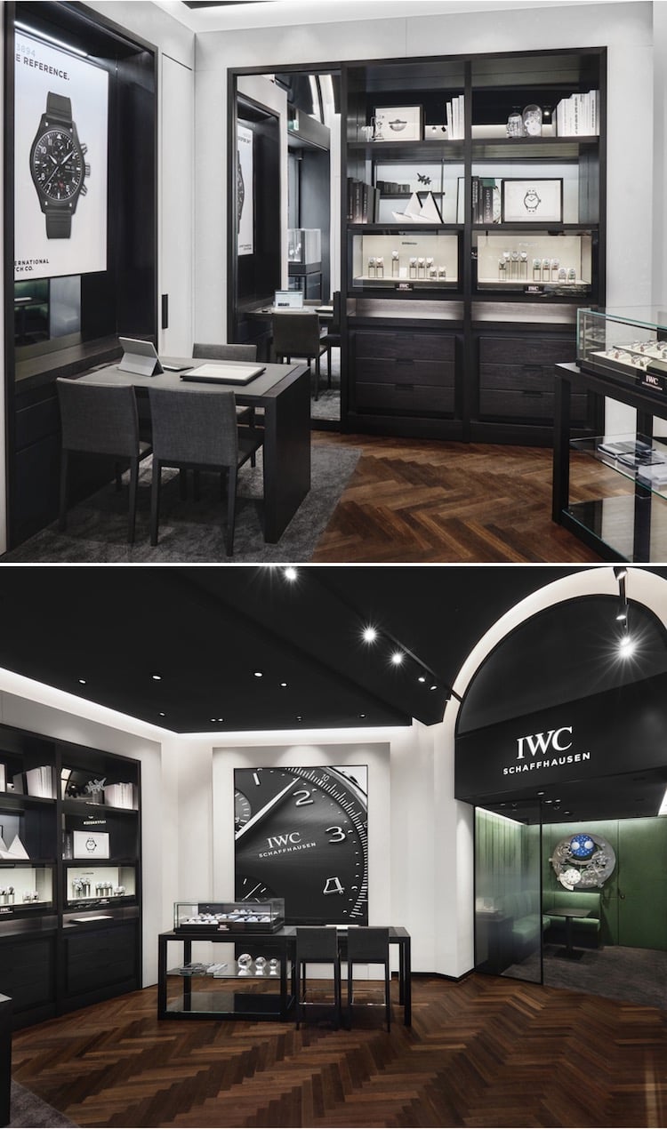La visita alla boutique e agli orologi che ospita è favorita dal tono del pavimento e del soffitto, prevalentemente scuri, che si combinano con le finiture luminose delle pareti per dar vita a un affascinante effetto orizzonte. Oltre ad ammirare le creazioni IWC Schaffhausen, gli appassionati possono godere anche di un’area lounge dedicata al relax, pensata come un elegante salotto all’interno del quale è possibile organizzare incontri esclusivi e attività.