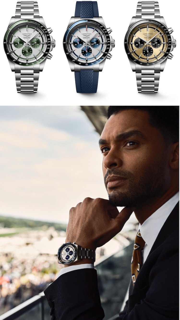 Perfetto anche in contesti come il Royal Ascot, manifestazione della quale Longines è partner e dove è stato visto al polso dell’attore Regé-Jean Page, ha una cassa da 42 mm e, nelle declinazioni più cool ha un quadrante argentato opaco con contatori a contrasto blu o verdi abbinati alla lunetta con scala tachimetrica in ceramica blu o verde o un quadrante champagne soleil con lunetta e contatori neri.