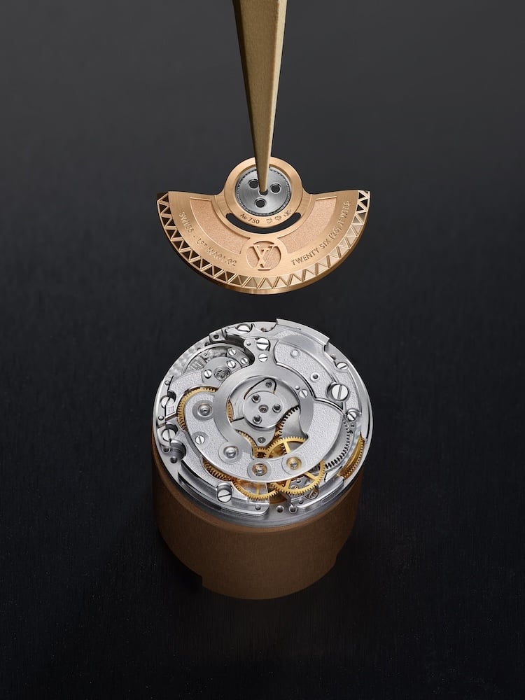 All’interno lavora il calibro automatico LFT023, sviluppato presso La Fabrique du Temps Louis Vuitton. È un movimento a carica automatica con 50 ore di riserva di marcia, che coniuga affidabilità e sobrietà costruttiva.