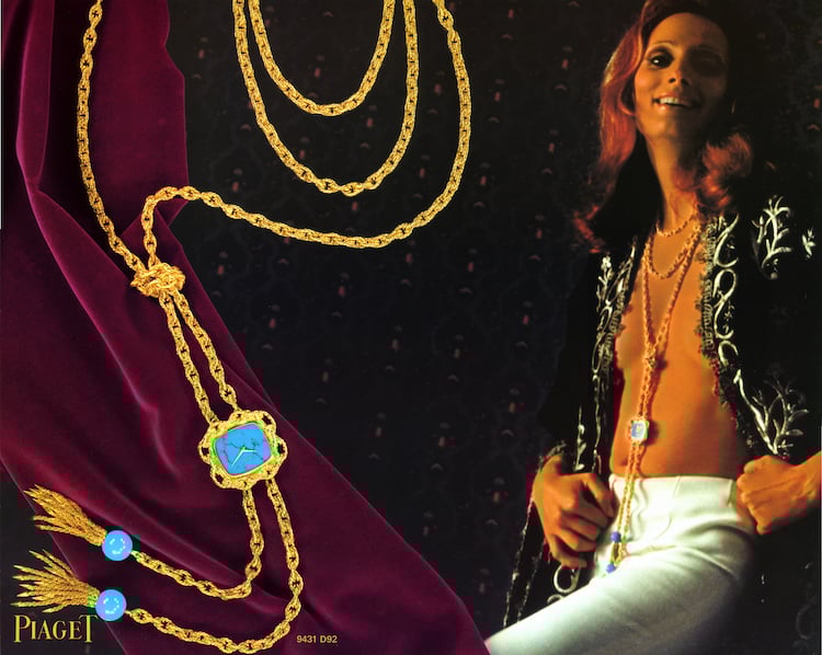 In un’epoca dominata dalla presenza costante degli smartphone nelle nostre vite, perché non affidarsi a un orologio con gioiello scintillante quando dobbiamo controllare l’ora senza accendere lo schermo del telefonino? Questa l’idea alla base dei nuovi High Jewellery Swinging Sautoir presentati da Piaget. Le novità, lanciate all’insegna della “Extraeleganza” (qui il Piaget Polo calendario perpetuo ultrasottile), evocano il 1969, anno in cui Piaget lancia la sua collezione d’avanguardia 21st Century, fatta di sgargianti orologi da polso e sautoir in oro, ideati non negli atelier dell’orologeria svizzera, ma durante le sfilate parigine, per adattarsi alle tendenze fashion del momento.