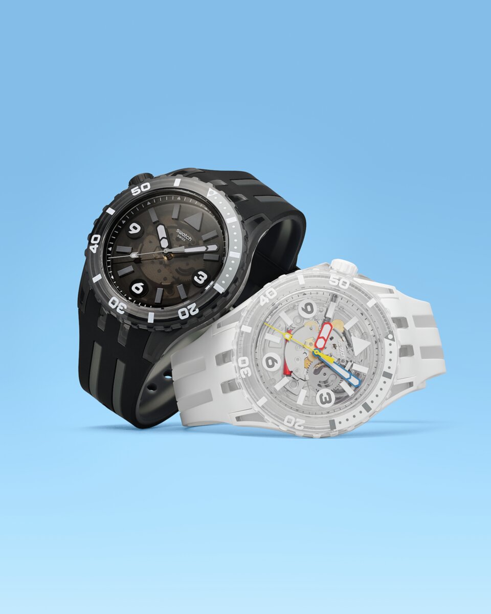 Swatch riprende l’idea originaria del diver come oggetto funzionale e popolare, lo reinterpreta con ironia e lo colloca in una dimensione narrativa: quella di chi, ogni giorno, può tuffarsi in un immaginario subacqueo senza uscire dalla città.