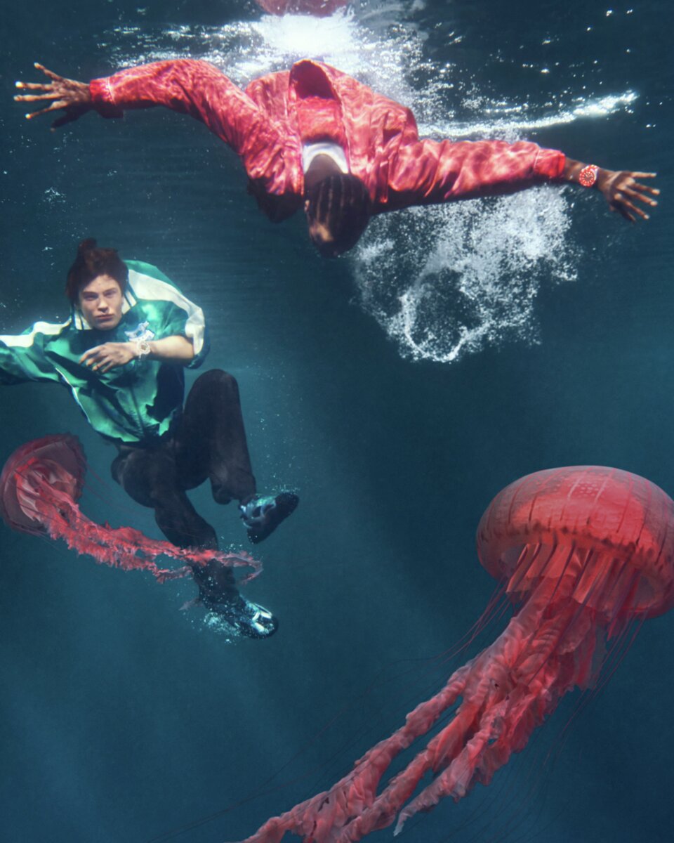 La collezione si compone di cinque varianti accomunate dalla cassa da 44 mm, dalla resistenza all’acqua fino a 100 metri e da un’estetica che mescola elementi sportivi e pop. I modelli prendono il nome da alcune tra le meduse più iconiche – come Lion’s Mane, Black Sea Nettle o Aurelia Aurita – e rappresentano il lato più giocoso ma anche più tecnico del DNA Swatch. Senza tradire il suo spirito urbano, il brand introduce un’estetica marina rielaborata per il quotidiano, tra accenti fluo e materiali eco-consapevoli.