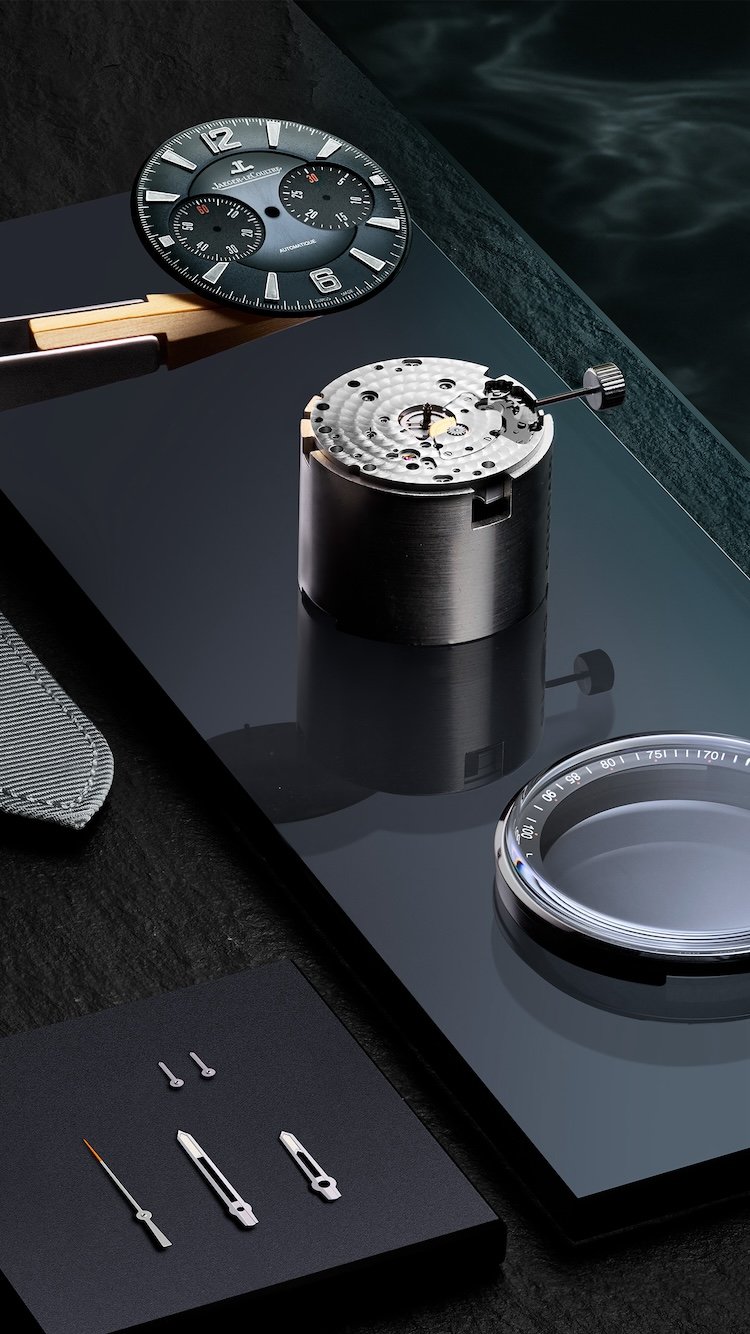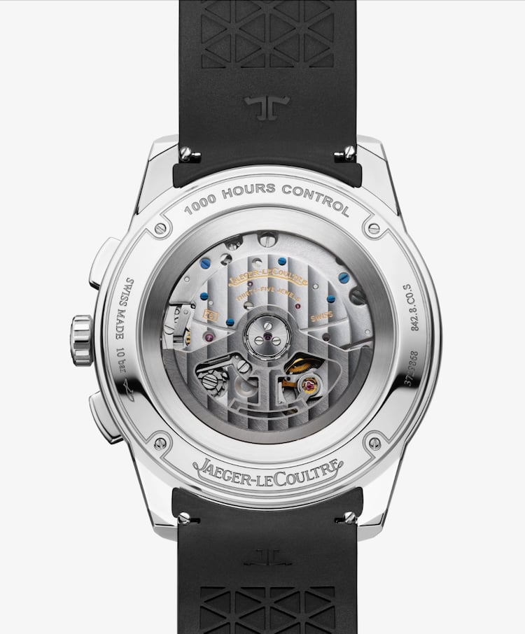 All’interno del Polaris Chronograph Ocean Grey pulsa il Calibro Jaeger-LeCoultre 761, movimento automatico di manifattura completamente integrato. Dotato di due bariletti, garantisce una riserva di carica di 65 ore, combinando precisione e prestazioni elevate con una struttura progettata per la massima affidabilità. L’adozione della ruota a colonne e dell’innesto verticale assicura un azionamento fluido delle funzioni cronografiche.