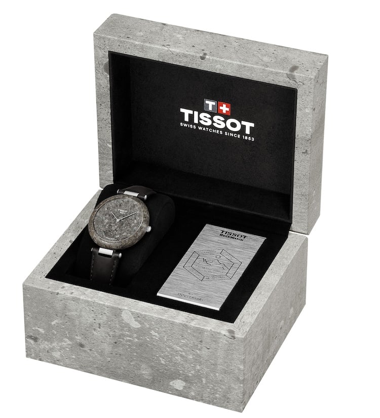 La confezione, pensata come un blocco di granito, accompagna ogni esemplare numerato da 001 a 999. È un richiamo diretto alle origini del modello, quando nel 1985 Tissot celebrò la sua audacia con installazioni monumentali a Hong Kong e all’Expo di Vancouver.