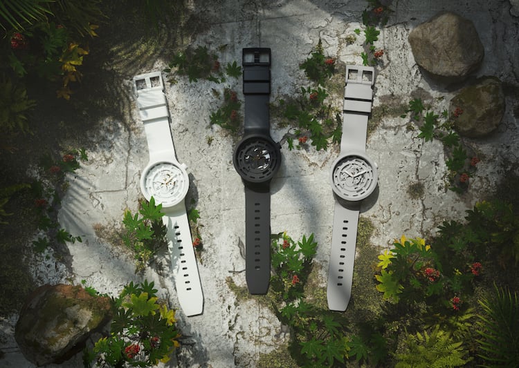 Primo modello scelto per introdurre in collezione la Bioceramic è il Big Bold: la sua ampia cassa da 47 mm permette infatti di apprezzarne al meglio le caratteristiche.Un effetto amplificato anche dalla costruzione del quadrante, attraverso il quale risultano ben visibili il movimento e la struttura dell’orologio. Il cinturino, il vetro e la loop sono realizzati in plastica di origine biologica.