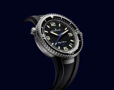 Due cinturini inclusi aumentano la versatilità del segnatempo. Il primo è in caucciù blu con motivo decorativo raffigurante uno squalo martello rosso e una maglia singola in titanio incisa con il logo del brand. Il secondo, più sportivo, è in tessuto blu con bordi rossi e chiusura a strappo in velcro, ideale per immersioni attive. Entrambi sono pensati per offrire comfort e sicurezza, anche in condizioni estreme.