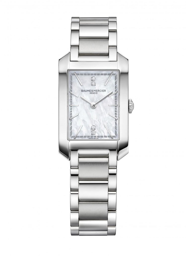 Uno stile unico che rende omaggio al movimento dell’Art Déco, distinguendosi sin dal primo sguardo per il design originale espresso attraverso la cassa di forma rettangolare. Baume & Mercier si presenta all’appuntamento con la prima edizione digitale del Watches & Wonders proponendo agli appassionati le nuove linee della sua collezione Hampton, orologi che rifuggono gli angoli retti per valorizzare, invece, la luce che scivola sulle superfici lisce. Tre le dimensioni dei segnatempo appartenenti alle serie, tutti con cassa in acciaio lucido: 35 x 22,2 mm, 43 x 27,5 mm o 48 x 31 mm. I modelli automatici dispongono di un fondello in vetro zaffiro avvitato con quattro viti, mentre la cassa delle versioni al quarzo è caratterizzata da un fondello chiuso. Protetti da un vetro zaffiro bombato, i quadranti si distinguono per le cifre arabe contemporanee, impreziosite da indici rivettati, e per le lancette a forma di gladio. Arricchiti da diamanti, si vestono di un colore argentato, blu satinato con decoro soleil o madreperla bianca, e sono ornati da una delicata minuteria. Le linee slanciate e le proporzioni equilibrate conferiscono un senso di fluidità agli orologi e permettono una lettura ottimale dell’ora. All’interno dei modelli Baume & Mercier battono movimenti al quarzo di nuova generazione con autonomia ottimizzata di 7 anni. Le declinazioni maschili sono animate da calibri automatici a 3 lancette oppure O/M e piccoli secondi con massa oscillante decorata a Côtes de Genève e dispongono di una riserva di carica di 38 o 42 ore, a seconda del modello.