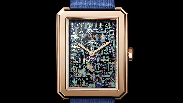 Il Boy Friend Tweed Art è invece disponibile in soli 20 pezzi: cassa e lunetta sono in oro beige, con il quadrante arricchito dal motivo tweed in smalto “Grand Feu”. La corona è in onice cabochon e oro, così come la fibbia ad ardiglione che accompagna il cinturino in satin. All’interno dell’orologio, impermeabile fino a 30 metri, un movimento meccanico a carica manuale con funzione di ore e minuti.