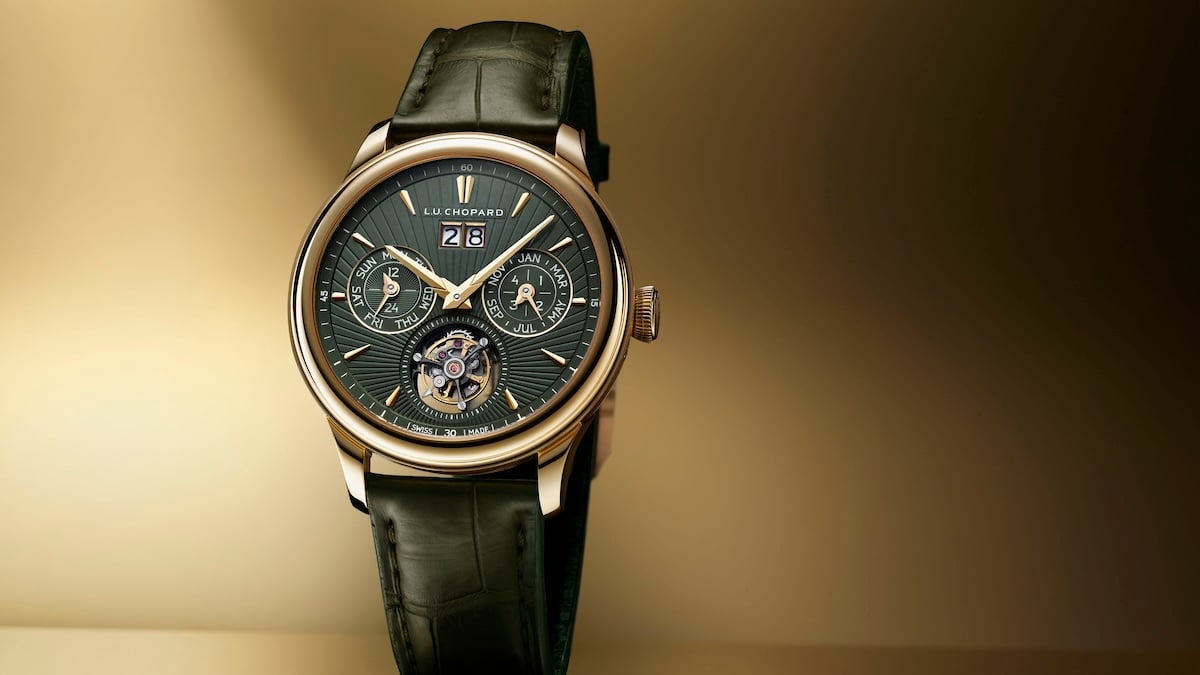 Il nuovo Chopard L.U.C Flying T Twin Perpetual segna un punto di svolta nella collezione della maison, combinando una complicazione avanzata con un approccio estetico rinnovato. Questo orologio introduce il calibro L.U.C 96.36-L, un tourbillon volante accoppiato a un calendario perpetuo con grande data, racchiuso in una cassa in oro etico giallo 18 carati dal diametro di 40,5 mm. Ogni dettaglio è stato pensato per unire tradizione e innovazione, dal quadrante guilloché a mano in Verde Foresta, al sistema di bracciale intercambiabile.