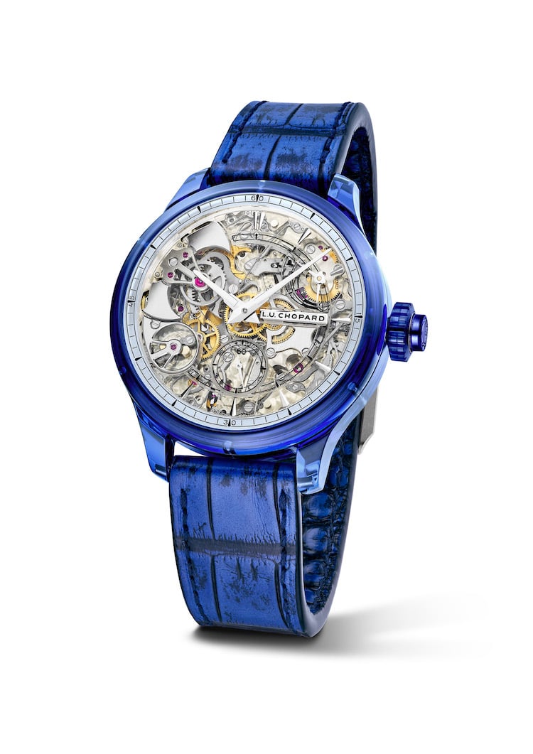 Nel 2016 la collezione L.U.C. di Chopard sorprese gli appassionati di orologeria di tutto il mondo proponendo un nuovo paradigma nel mondo delle ripetizioni minuti, un modo inedito di generare e propagare il suono grazie a timbri in zaffiro massiccio e vetro zaffiro come cassa di risonanza. Un modello capace di ottenere il prestigioso riconoscimento Aiguille d’Or al Grand Prix d’Horlogerie e che oggi torna in una veste inedita: quella di un segnatempo esclusivo in cristallo colorato, realizzato in edizione limitata (qui, invece, una novità più sportiva: l’Alpine Eagle Cadence 8HF).