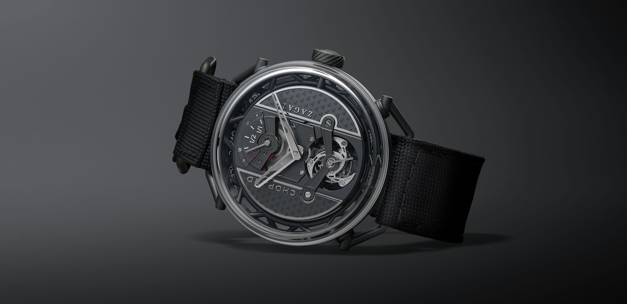 Chopard firma con Zagato un concept watch ultraleggero in titanio ceramicizzato, costruito attorno a una struttura tubolare e animato dal calibro L.U.C 04.04-L con tourbillon.