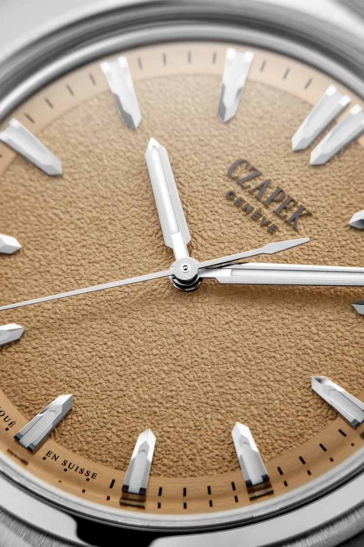 All’interno, il cuore del modello è il calibro SXH5 di manifattura Czapek, un movimento automatico con microrotore in platino riciclato, capace di una riserva di carica superiore a 60 ore. Il fondello in vetro zaffiro permette di ammirare il meccanismo e l’eccezionale finitura del movimento.