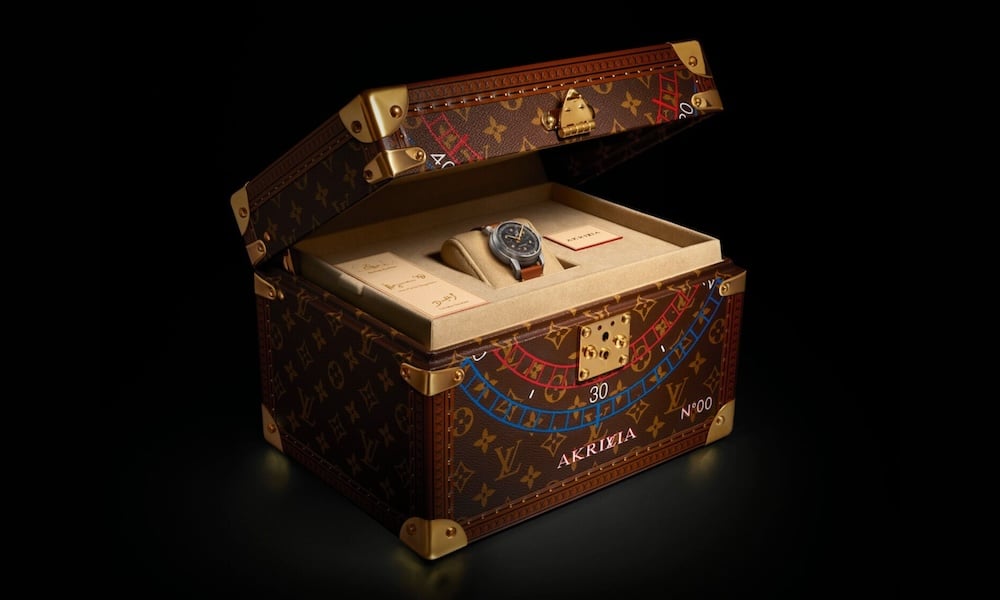 Due maison dalle storie molto diverse, nate a 150 anni di distanza l’una dall’altra. Legate, però, dalla stessa passione per la creatività e l’artigianalità delle proprie creazioni. Dalla collaborazione tra Louis Vuitton e Atelier Akrivia nasce così il nuovo segnatempo LVRR-01 Chronographe à Sonnerie, un cronografo bifronte con complicazione a rintocchi alimentato da un movimento tourbillon completamente inedito. L’idea dell’orologio è racchiusa nel quadrante, che osservato da vicino rivela una fusione dei due loghi, con “LV” sottilmente incorporato in “AKRIVIA“. Un passaggio storico, visto che mai in passato il brand francese aveva unito il proprio simbolo a quello di altri marchi.