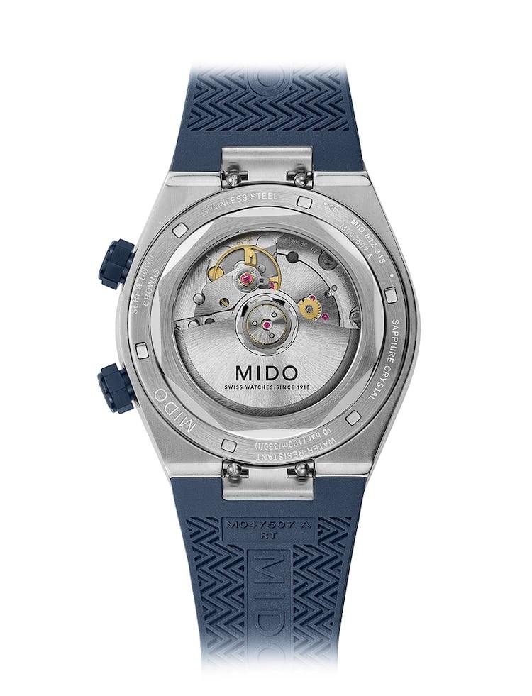 Un dettaglio significativo: la scelta di mostrare questo movimento attraverso il fondello trasparente testimonia l’attenzione di Mido anche per ciò che resta nascosto alla vista quotidiana. Ogni componente è rifinito con cura, a conferma della volontà di portare sul mercato un orologio accessibile ma con un’anima meccanica degna dei segmenti superiori.