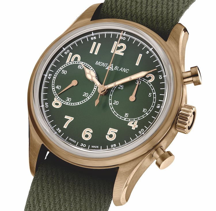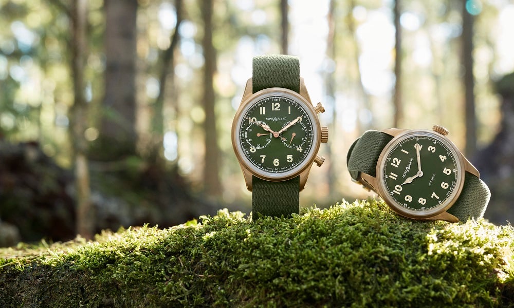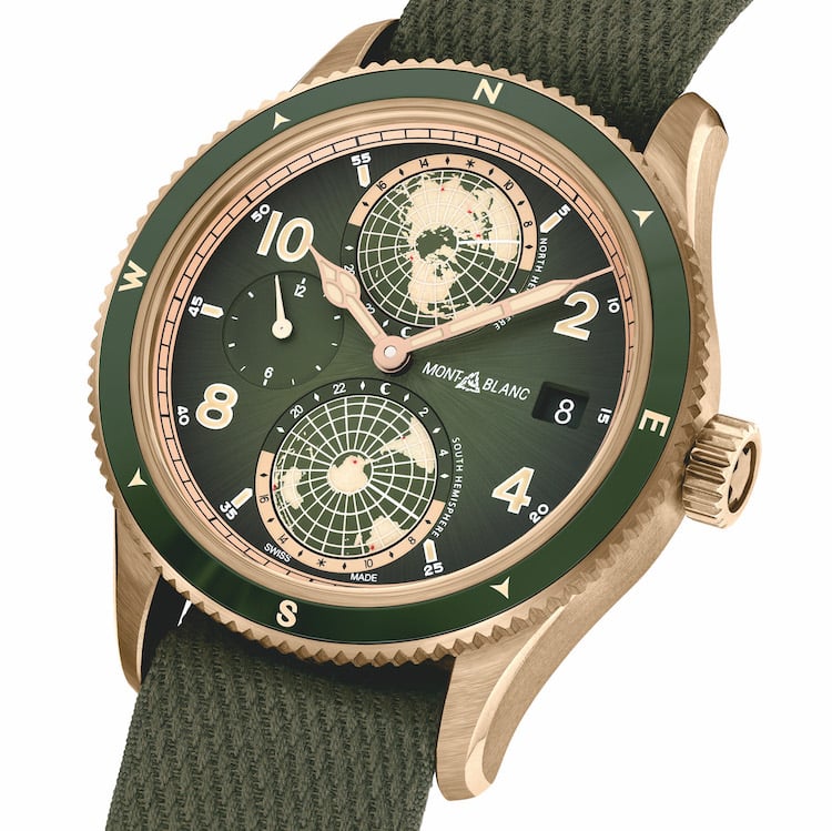 Un omaggio alla Manifattura Minerva e alla sua lunga storia, iniziata nel 1858 nella valle di Saint-Imier e proseguita con il lancio negli anni ’20 e ’30 di orologi precisi e nati per affrontare le condizioni più estreme. Un passato glorioso che oggi Montblanc richiama presentando tre modelli della collezione 1858, ispirata proprio a quei segnatempo che divennero in breve tempo un punto di riferimento per gli amanti dell’alpinismo e delle escursioni.Proprio il contatto con la natura è uno degli elementi che subito balzano agli occhi dei modelli, caratterizzati dal colore verde khaki. Montblanc 1858 Automatic, Montblanc 1858 Automatic Chronograph e Montblanc 1858 Geosphere sono pensati per i moderni esploratori e si presentano con cassa in bronzo, con finitura lucida e satinata, e anse sottili e smussate. Il fondello è realizzato in titanio con rivestimento color bronzo, per ridurre il rischio di allergie, e presenta la classica incisione del Monte Bianco insieme a un bussola e due picconi incrociati.