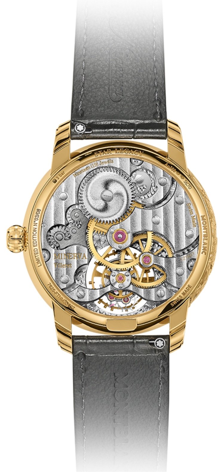 Prodotto in otto esemplari numerati, l’orologio è accompagnato da un cinturino in pelle di vitello grigia con chiusura déployante in oro giallo e da un diamante taglio Montblanc incastonato nella corona. Impermeabile fino a 30 metri, rappresenta uno dei progetti più complessi e teatrali mai realizzati dalla manifattura di Villeret.