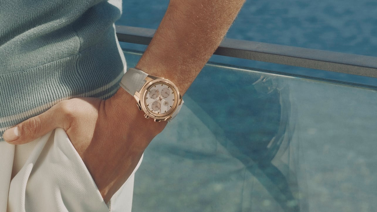 Il Parmigiani Fleurier Tonda PF Sport Chronograph in oro rosa Sandstone è disponibile al prezzo di 55.300 euro. Pensato per un pubblico alla ricerca di un orologio sportivo ma fuori dagli schemi, raffinato ma con un’anima funzionale, rappresenta un capitolo coerente nella narrativa della maison: quella di un lusso silenzioso, mai ostentato, che trova nella luce mediterranea una delle sue migliori cornici.