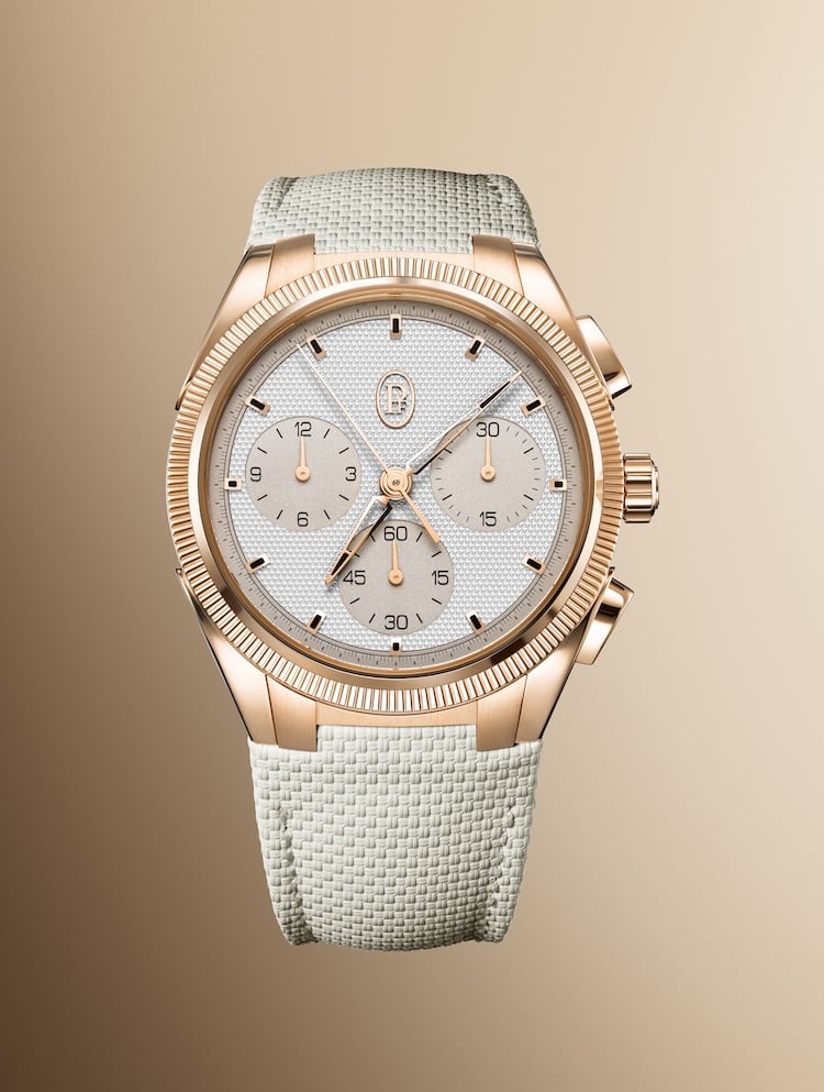 Parmigiani Fleurier presenta il Tonda PF Sport Chronograph in oro rosa, un cronografo ad alta frequenza con cinturino in caucciù ispirato alla pietra tufo.