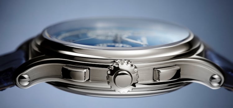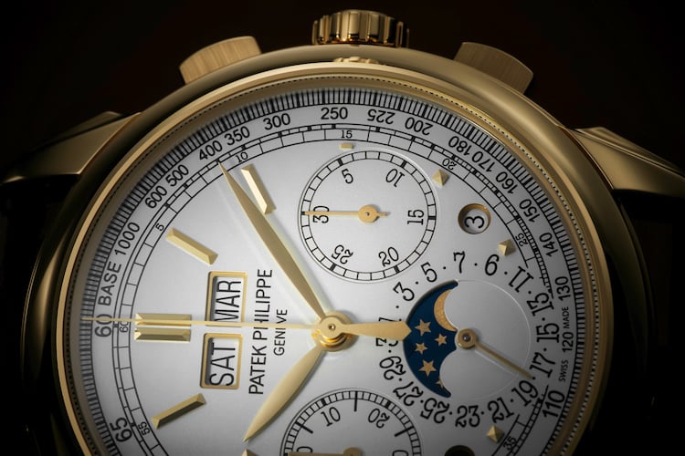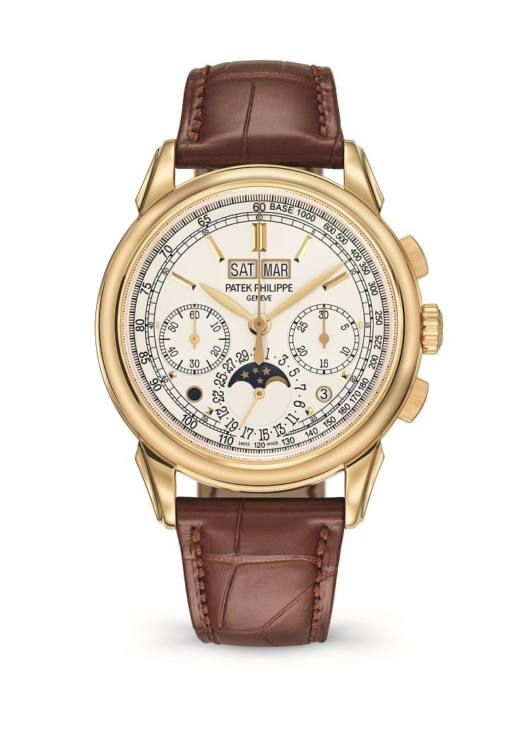 Completano il quadro due piccole finestrelle tonde per l’indicazione giorno/notte e il ciclo degli anni bisestili e una finestrella per le fasi lunari. All’interno dell’orologio batte il calibro CH 29-535 PS Q, il primo movimento cronografico con calendario perpetuo interamente sviluppato e realizzato da Patek Philippe (2011), visibile attraverso il fondo cassa in cristallo di zaffiro trasparente. Il modello si indossa con un cinturino in alligatore a squama quadrata, cucito a mano, color bruno cioccolato opaco, con fermaglio déployant in oro giallo. Il prezzo è di 155.848 franchi svizzeri, circa 145.000 euro.