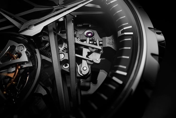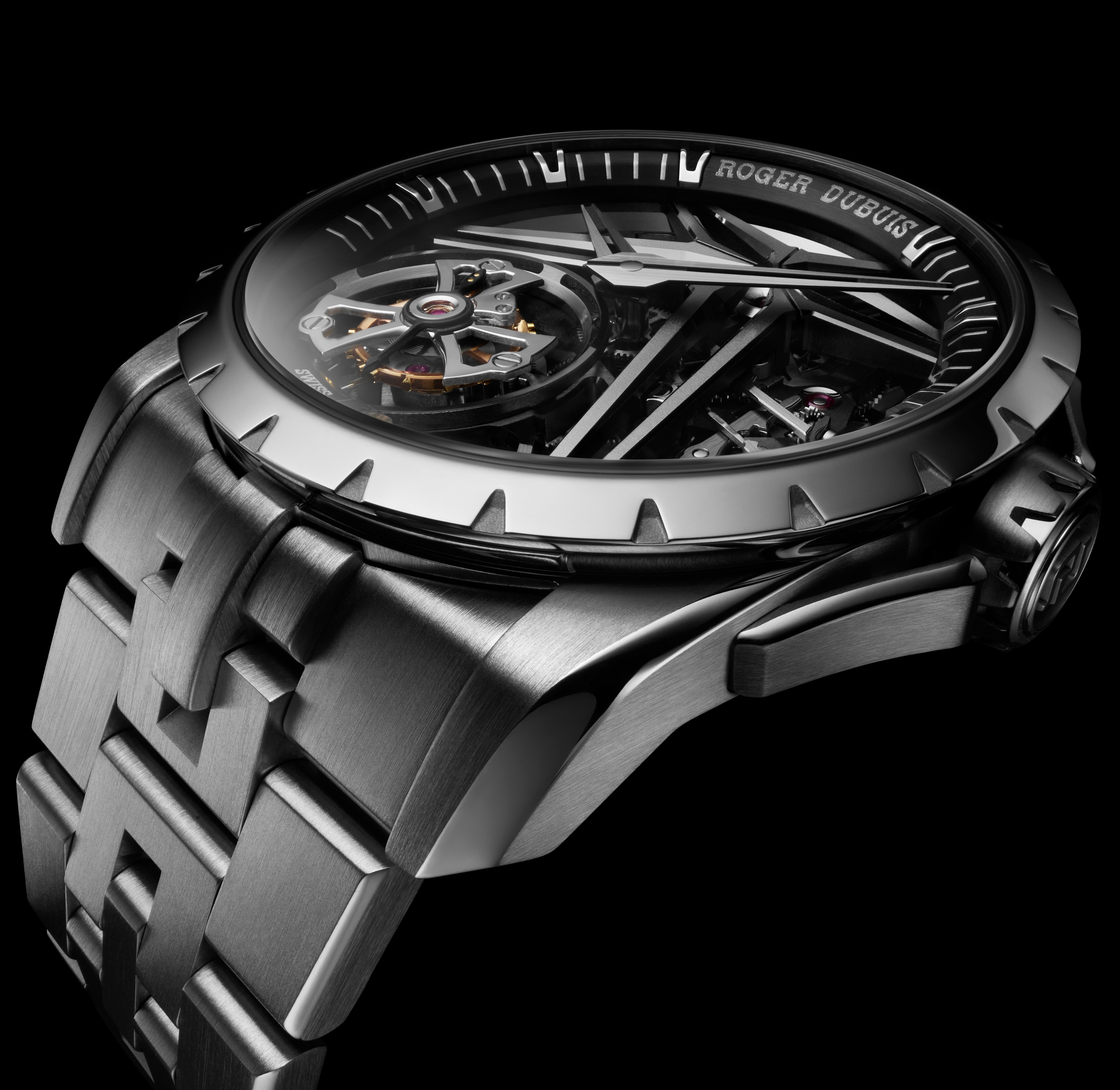 Il Roger Dubuis Excalibur Titanium Monotourbillon coniugare leggerezza e precisione. Realizzato con cassa in titanio grado 5, ha un diametro di 42 mm.