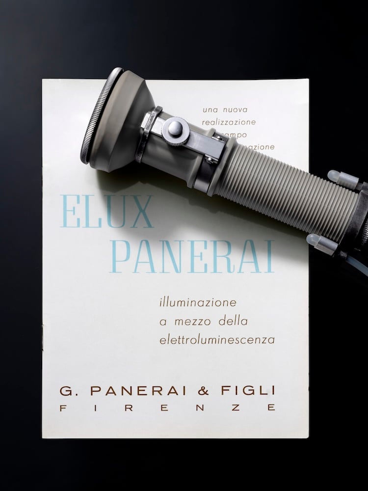 La storia di Panerai è sempre stata segnata dalla volontà di sperimentare, soprattutto nel campo della luminosità. Nel corso delle sue ricerche, la maison ha brevettato, nell’ormai lontano 1966, l’Elux, abbreviazione di “elettroluminescenza”: originariamente pannelli composti da superfici uniformemente luminose disponibili in varie dimensioni, forme e materiali, con la loro luminescenza mantenuta costantemente da un sistema elettrico campo, questi strumenti si sono trasformati in poco tempo in preziosi alleati per la Marina Militare Italiana, per migliorare la leggibilità delle apparecchiature di bordo.