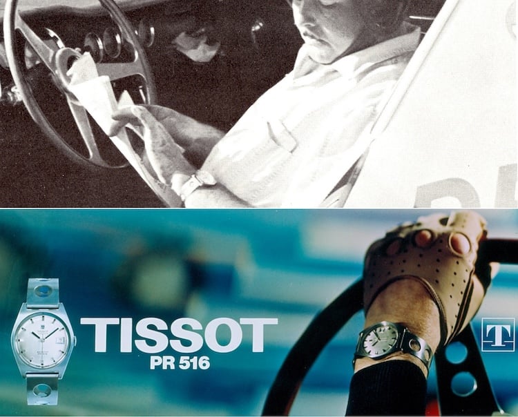 Per Tissot, la sigla PR ha una duplice interpretazione: “Particolarmente Robusto” e, talvolta, “Precisione e Resistenza”. Questo acronimo è parte integrante dell’identità della collezione PR516, lanciata nel 1965, il cui numero indica il 16° modello della 5a serie, caratterizzato anche da impermeabilità. I messaggi pubblicitari dell’epoca sottolineavano la versatilità di questo orologio, adatto a ogni ambiente: “In pista, in aria, in acqua – ovunque!” La sua solidità era assicurata da un innovativo movimento “flottante” e da giunti flessibili realizzati con materiali sintetici, funzionali come ammortizzatori.