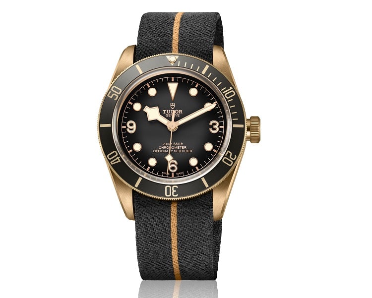Impermeabile fino a 200 metri di profondità, il segnatempo si presenta con cassa in acciaio da 42 mm e sistema di blocco della lunetta girevole bidirezionale attraverso una maglia terminale mobile a ore 12. Il quadrante è nero opaco, con indici delle ore rivestiti di un materiale luminescente. Ad animarlo, il movimento di manifattura a carica automatica MT5612 con indicazione di ora, minuti, secondi e data e autonomia di 70 ore. Il prezzo è di 3.760 euro.A Basilea Tudor ha presentato anche una versione color grigio ardesia con quadrante sfumato del Black Bay Bronze, vincitore del premio “Petite Aiguille” al Grand Prix d’Horlogerie de Genève 2016. A caratterizzare il modello è la cassa da 43 millimetri in bronzo, materiale utilizzato in passato per navi ed equipaggiamenti da immersione. All’interno il movimento di Manifattura MT5601 a carica automatica con rotore bidirezionale, il più grande tra i calibri dell’azienda svizzera. Il prezzo dell’orologio, con cinturino in tessuto jacquard grigio ardesia che omaggia la marina francese, è di 3.860 euro.