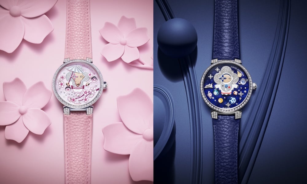 Louis Vuitton presenta Tambour Slim Vivienne Jumping Hours Sakura e Tambour Slim Vivienne Jumping Hours Astronaut.