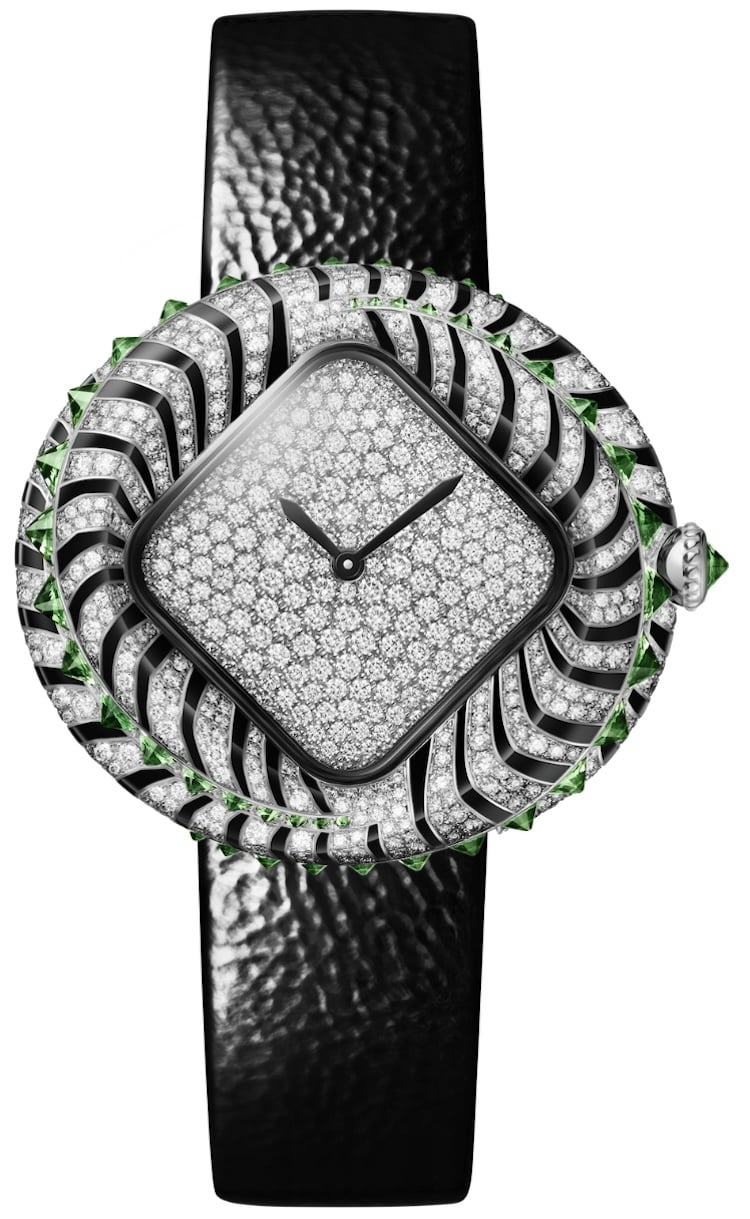 Carismatici e indomabili, gli iconici animali della fauna Cartier sono presenti nell’orologeria della Maison fin dal 1914, anno in cui il manto della pantera appare per la prima volta sulla cassa di un orologio. La novità di quest’anno gioca invece combinando la zebra e il coccodrillo. La silhouette di questa creatura immaginaria incornicia, come in un abbraccio, il quadrante a losanga.