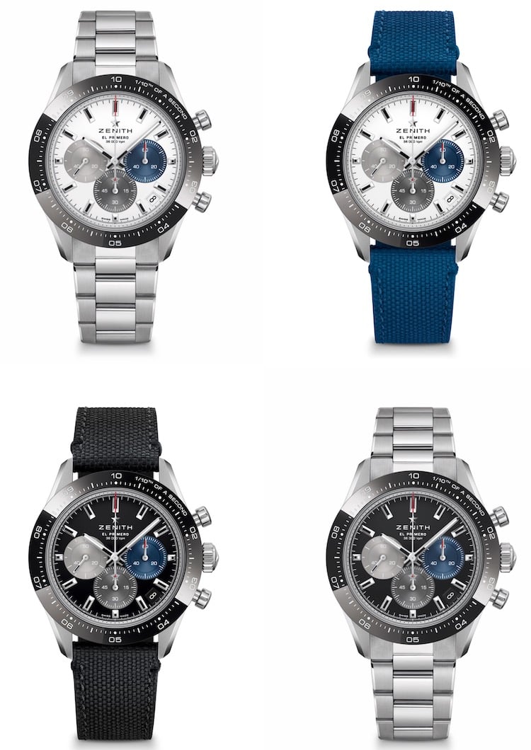 Due le referenze in cui è disponibile il Chronomaster Sport: con quadrante bianco o nero. Entrambe presentano i caratteristici contatori cronografici El Primero di tre colori, blu, antracite e grigio chiaro, proprio come il modello A386 del 1969. Ogni contatore è graduato su 60 per una lettura intuitiva e istantanea del cronografo. Il segnatempo, con cassa in in acciaio da 41 mm, è disponibile con un bracciale integrato in acciaio simile a quelli ideati da Gay Frères, in passato autore di alcune delle soluzioni adottate da Zenith. In alternativa, è disponibile l’opzione con cinturino in caucciù testurizzato effetto “Cordura” con fibbia déployante in acciaio.